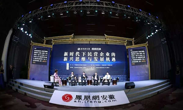 在论坛圆桌对话上,周勇董事长与中国建筑技术集团副总裁刘文,资深媒体人、凤凰新媒体高级副总裁刘春,岸香国际控股集团董事长黄保锁作为第一轮圆桌对话的嘉宾,共同进行以“新时代下民营企业的新兴思维与发展机遇”为议题的对话。