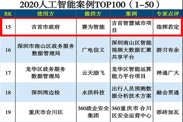日前,中国科学院《互联网周刊》、eNet研究院、德本咨询联合发布了“2020人工智能案例TOP100”榜单。赢博手机在线官网智能承建和运营的吉首智慧城市——智慧吉首PPP项目顺利入选榜单。